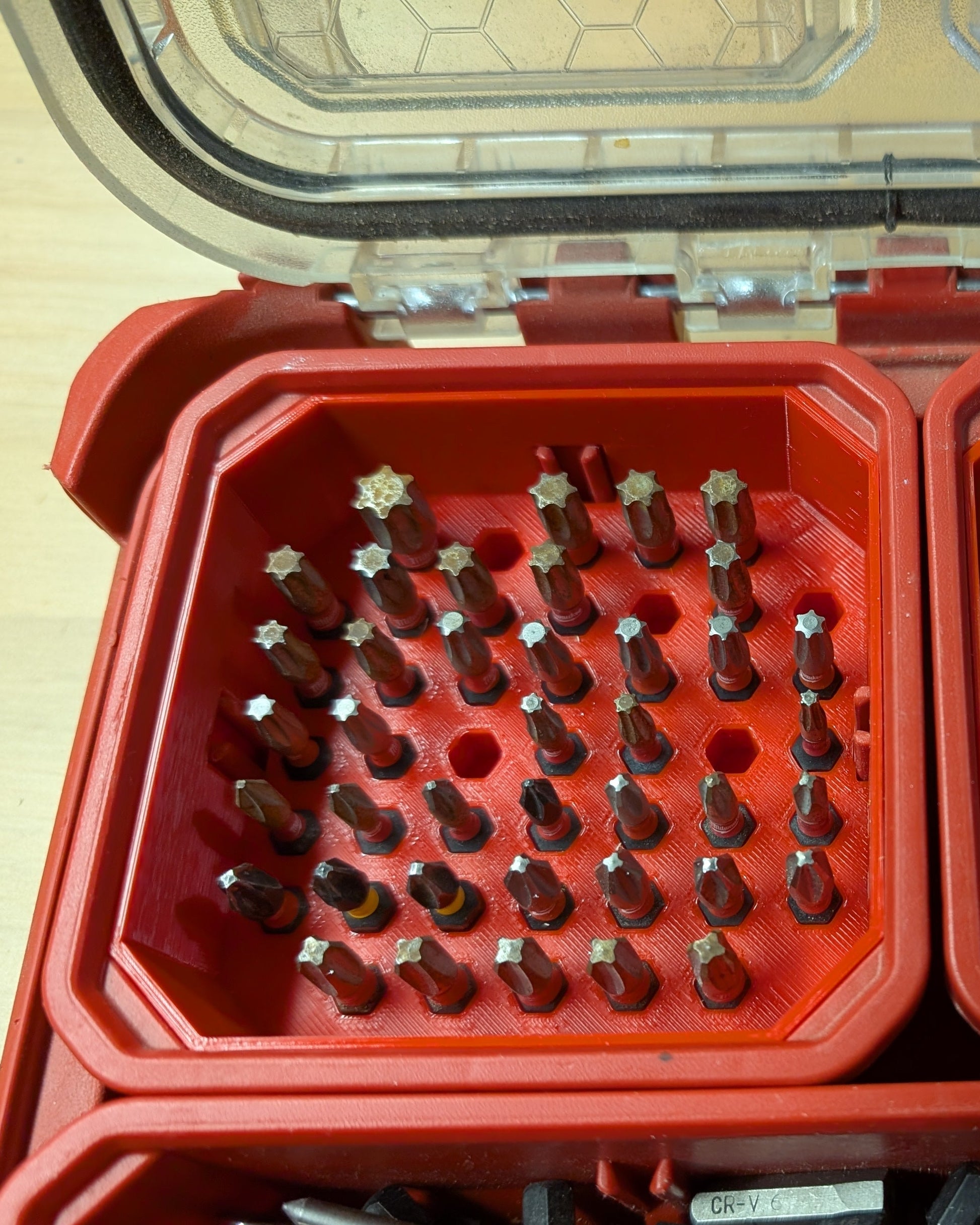 Organiser dine bits effektivt med denne smarte holder. Designet til at passe perfekt i dine lav-profil Milwaukee Packout kasser, så du altid har det rette værktøj lige ved hånden.